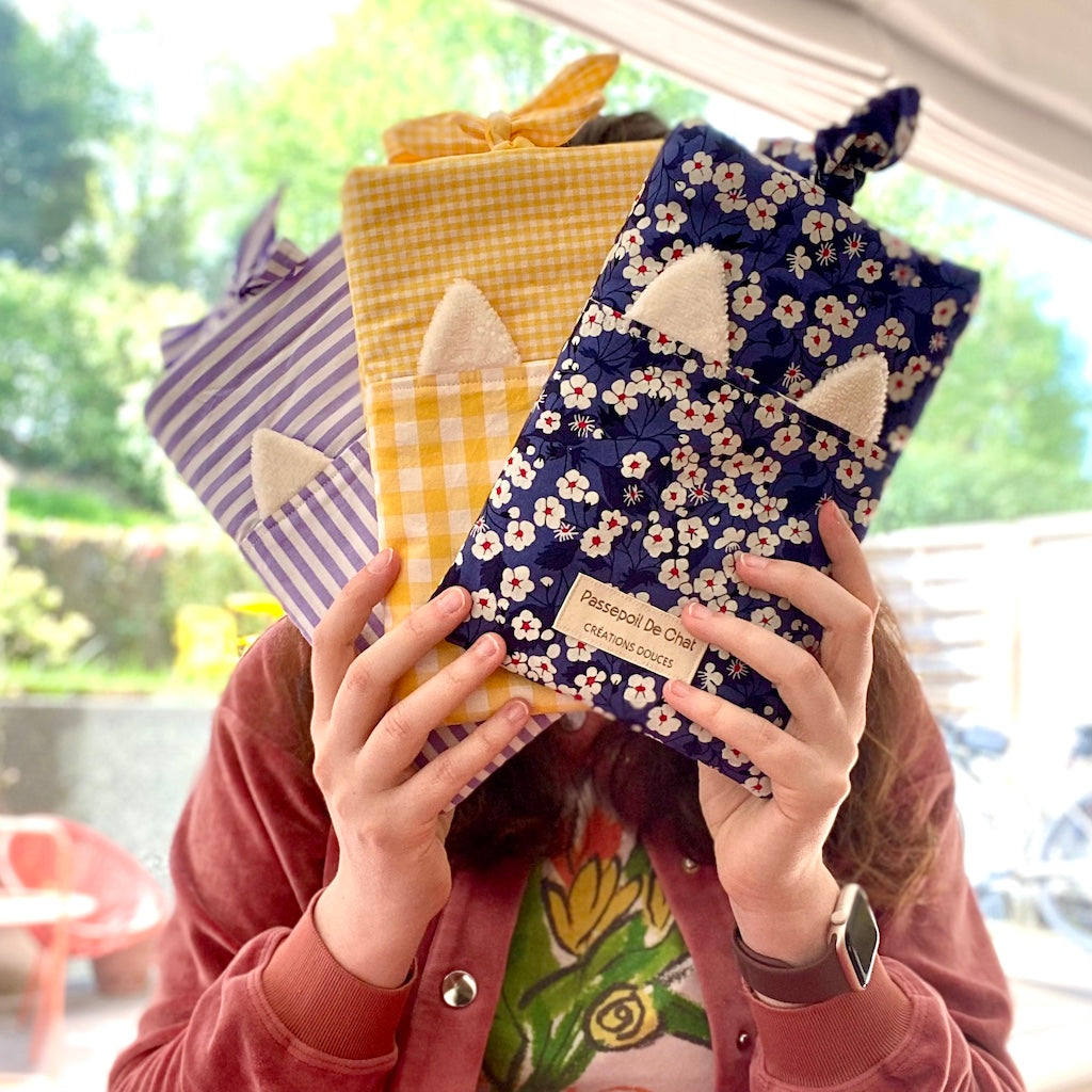 Des pochettes à livre avec une poche ventrale à oreilles de chat,...