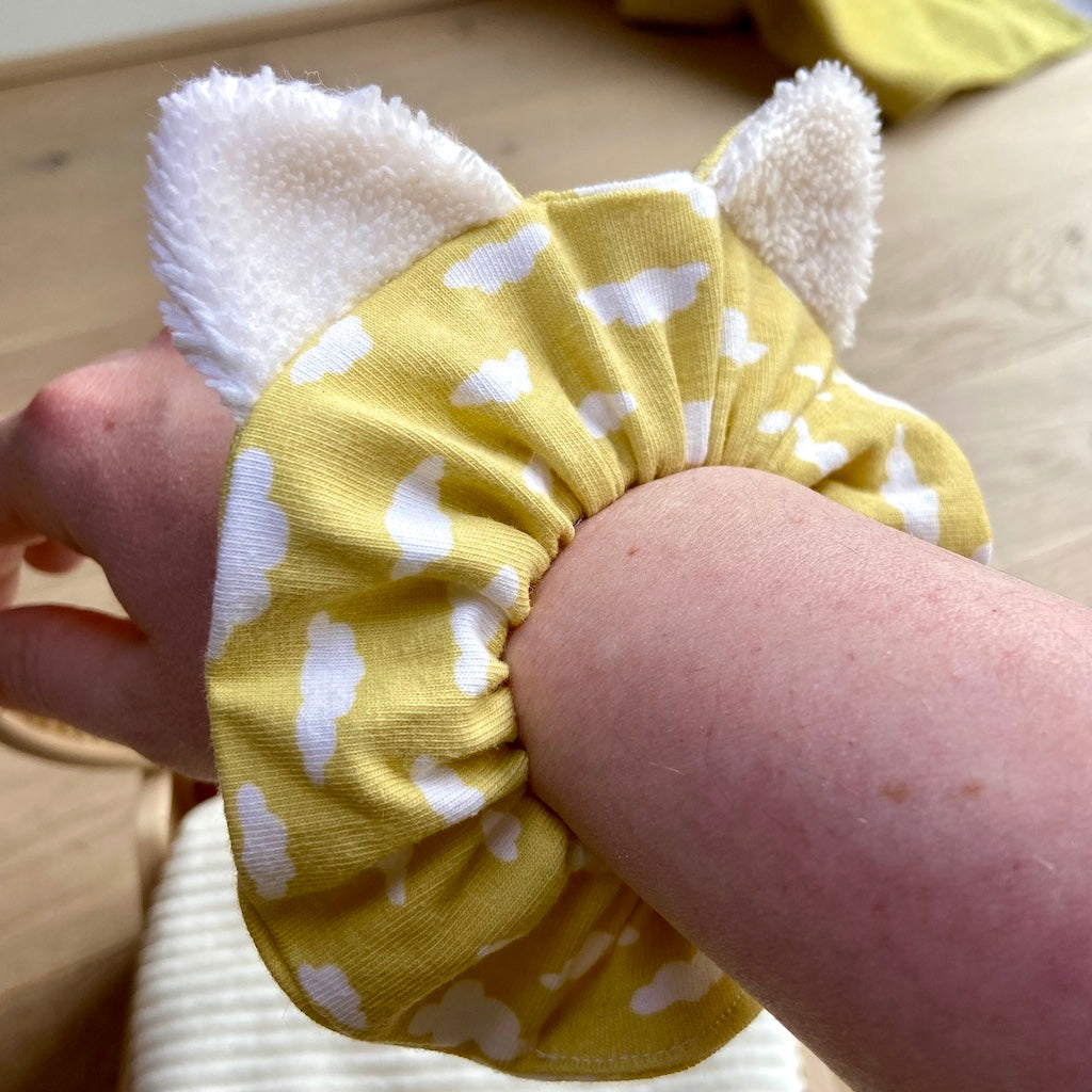 Confectionné en coton, avec l’intérieur des oreilles en éponge de bambou toute douce, il maintient les cheveux sans tirer tout en ajoutant une touche féline et colorée à chaque coiffure.