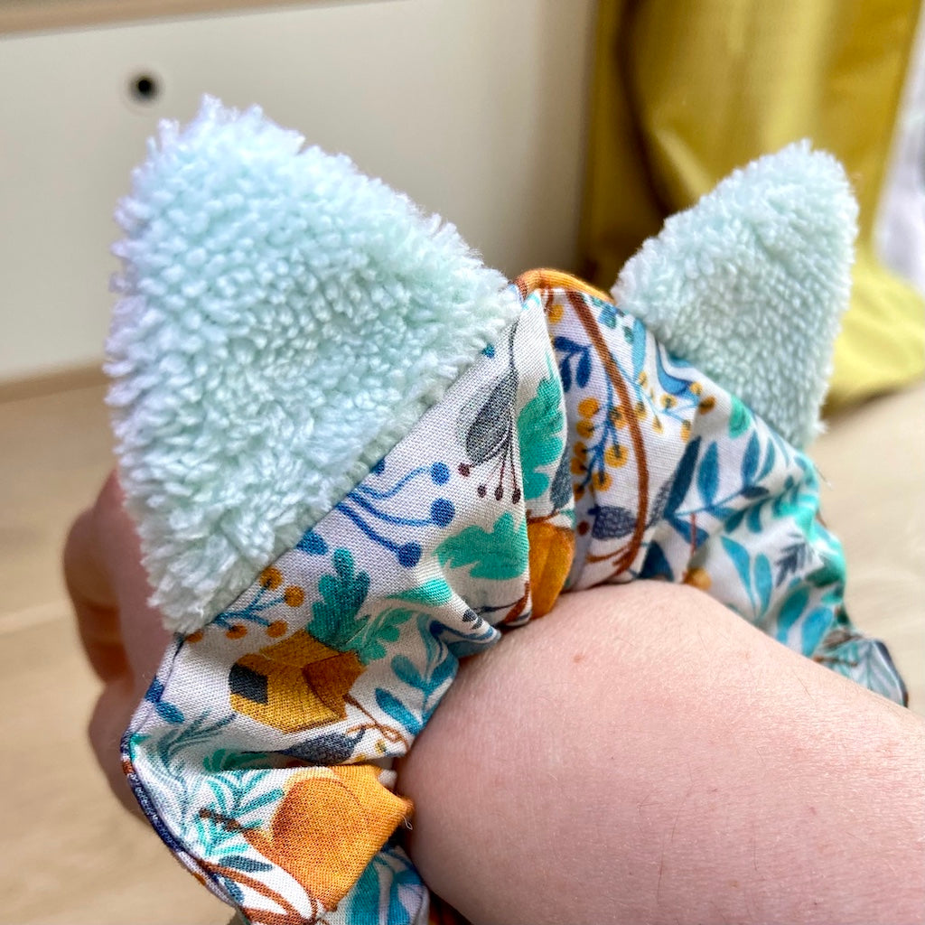Confectionné en coton, avec l’intérieur des oreilles en éponge de bambou toute douce, il maintient les cheveux sans tirer tout en ajoutant une touche féline et colorée à chaque coiffure.