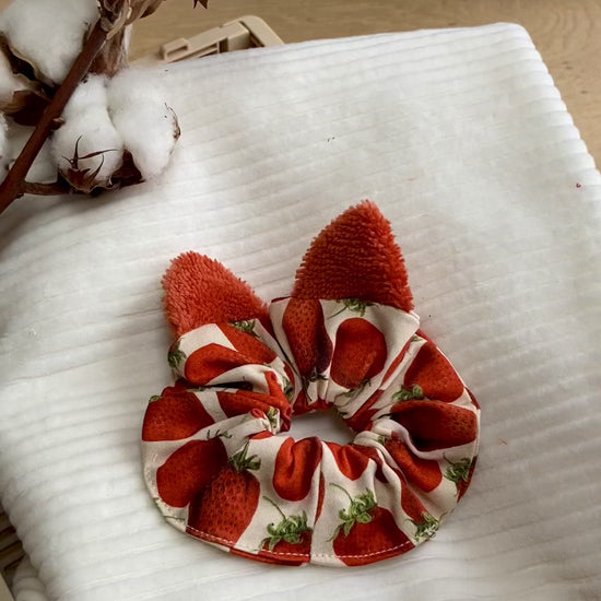 Décliné ici avec un magnifique coton fraises épais, avec l’intérieur des oreilles en éponge de bambou terracotta toute douce, il maintient les cheveux sans tirer tout en ajoutant une touche féline et colorée à chaque coiffure.