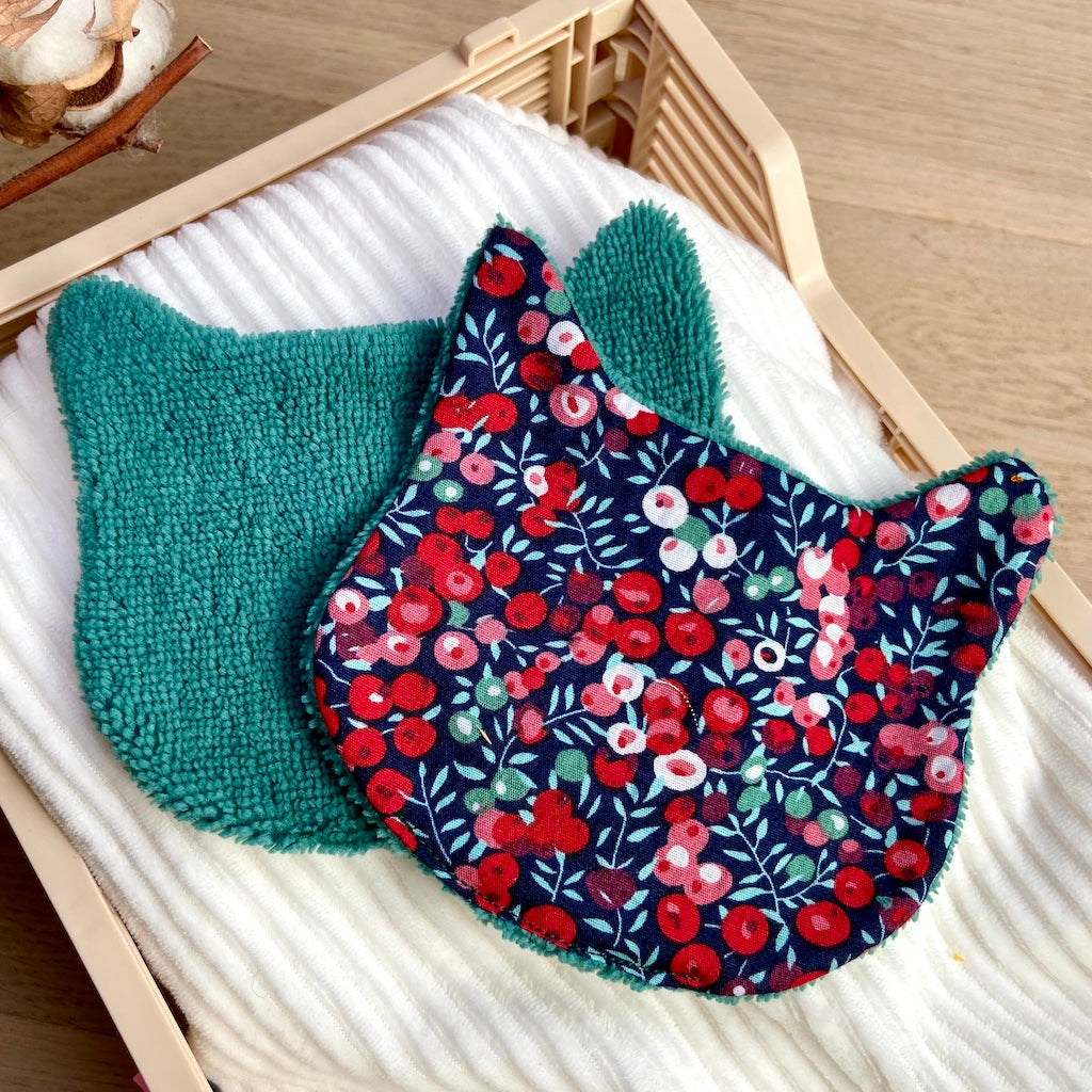 Adoptez le Chaton démaquillant, la solution toute douce pour dire adieu aux cotons jetables grâce à sa face en coton imprimé et sa face en éponge de bambou ultra-douce.