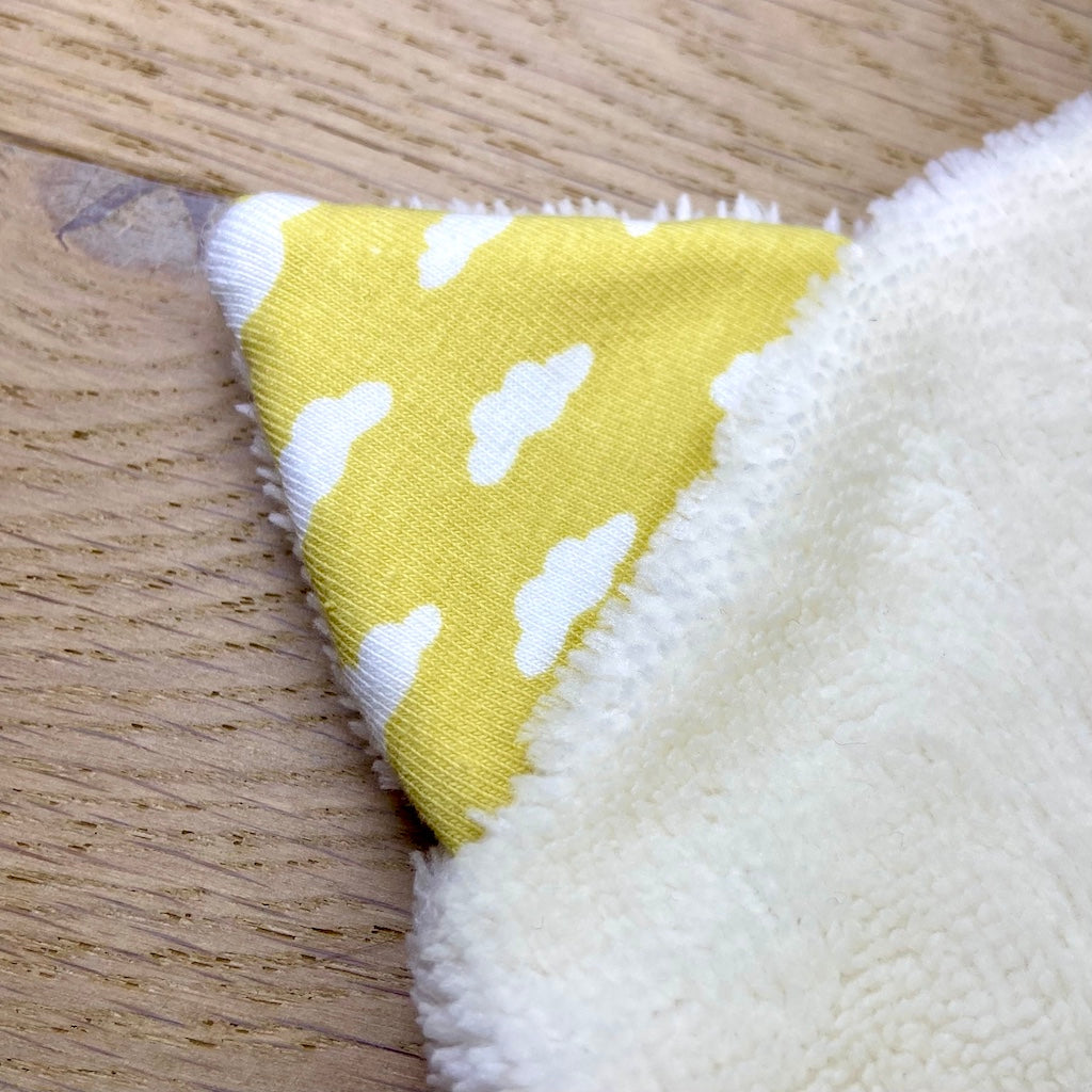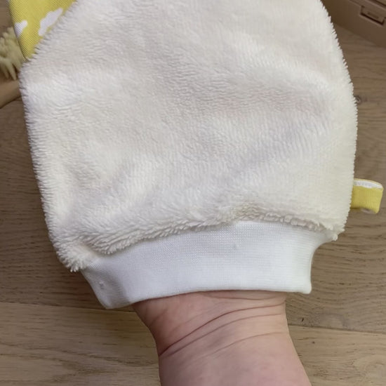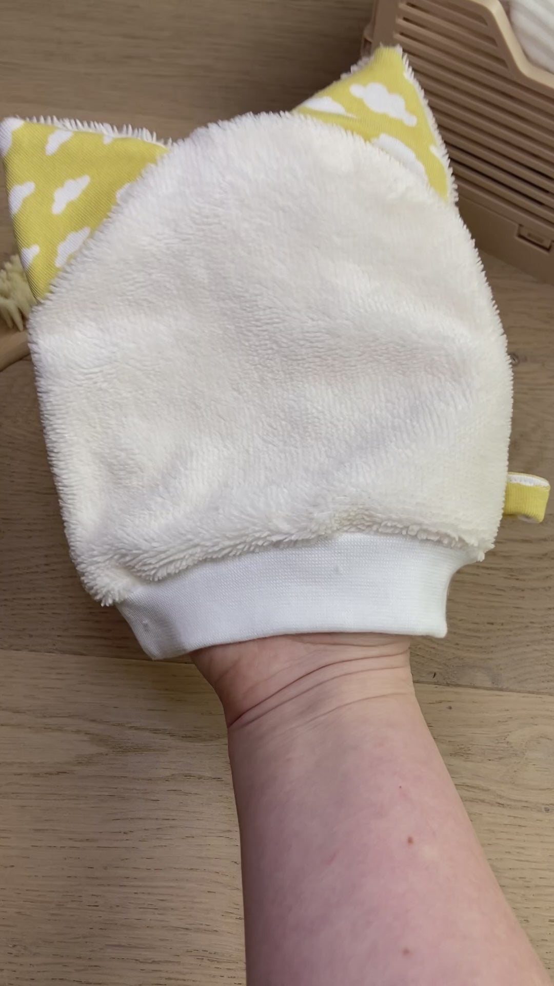 Chaque gant est cousu à la main dans mon atelier, en éponge de bambou ultra-douce, parfaite pour les peaux délicates.