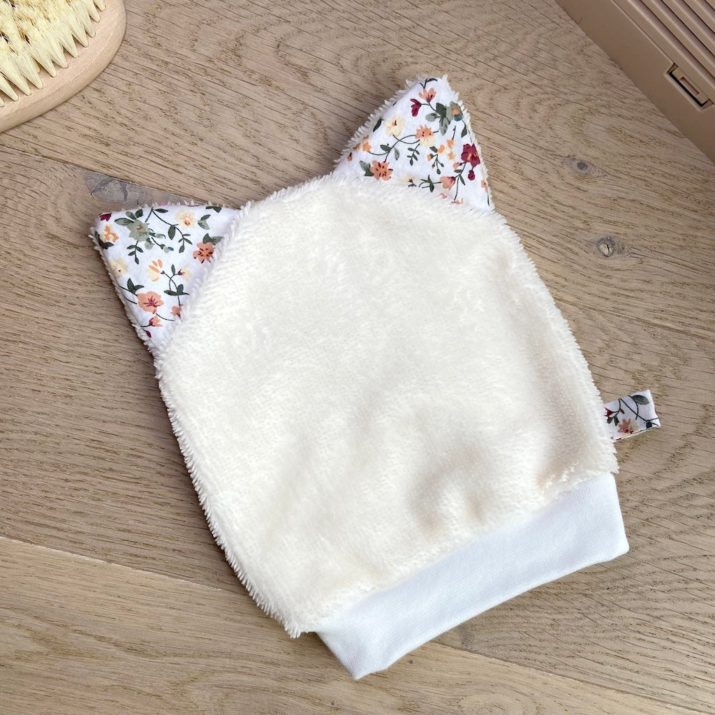 Rendez le moment du bain aussi doux qu’amusant avec le gant de toilette à oreilles de chat.