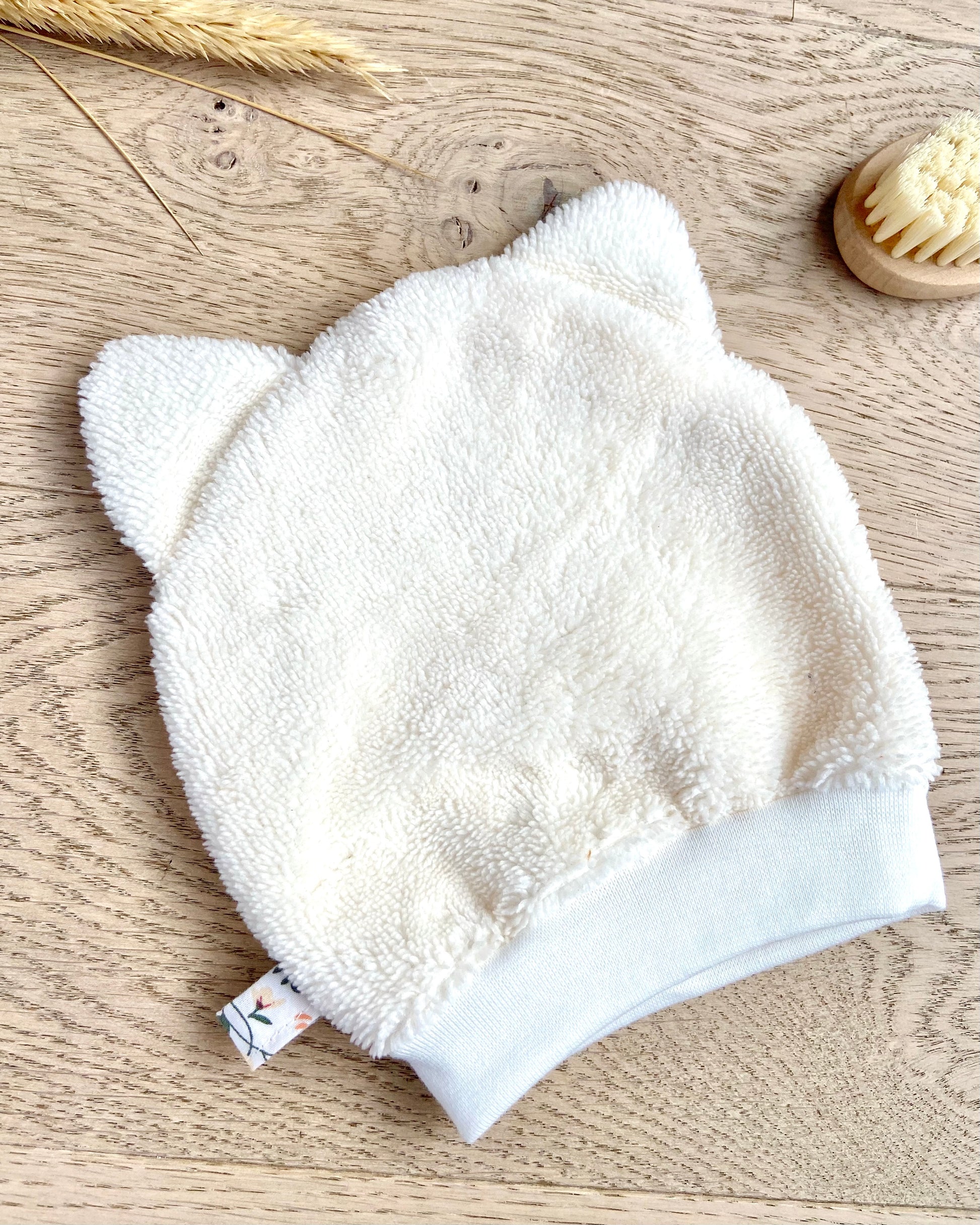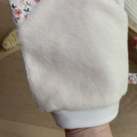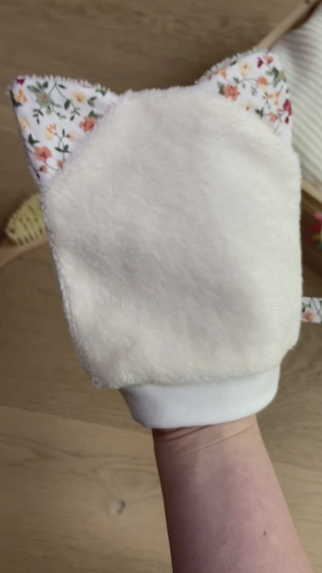 Chaque gant est cousu à la main dans mon atelier, en éponge de bambou ultra-douce, idéale pour les peaux délicates des enfants.