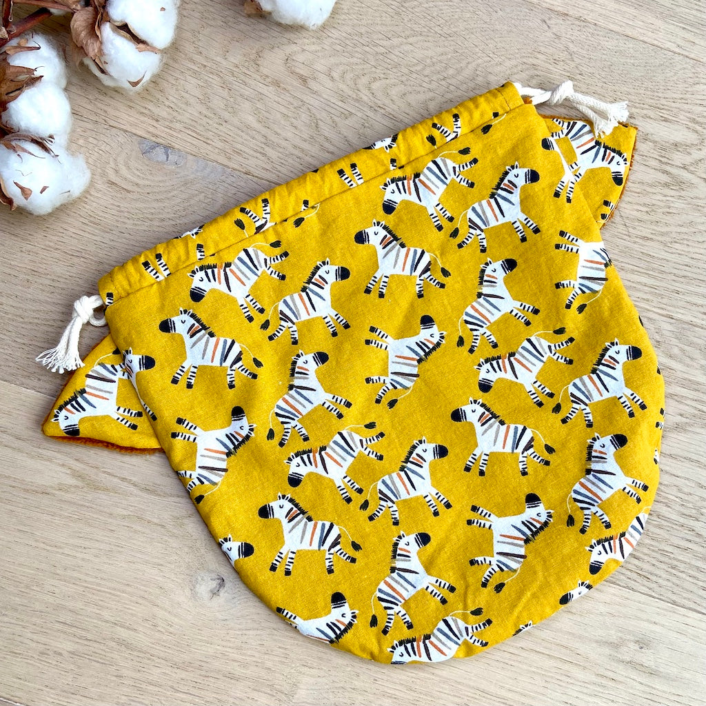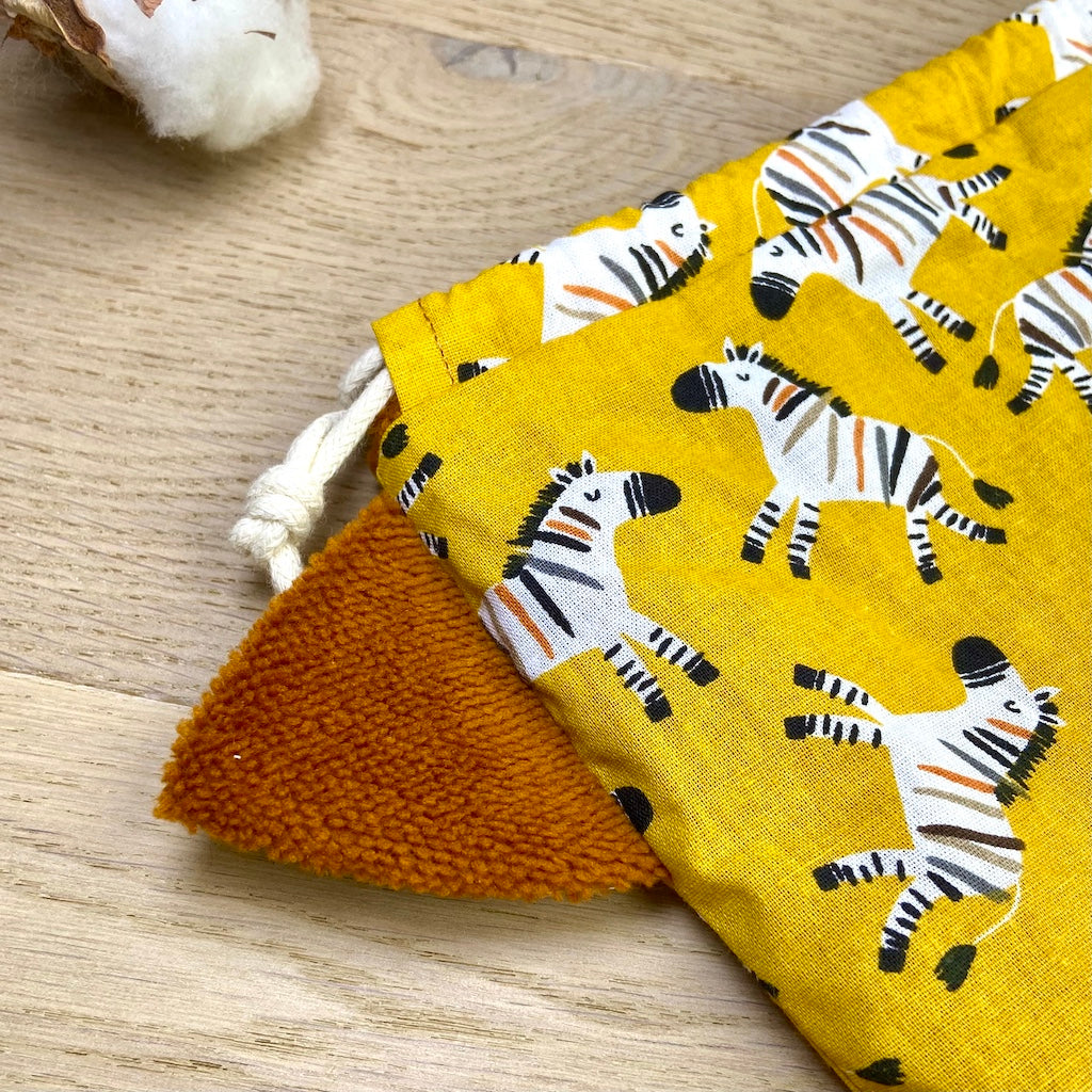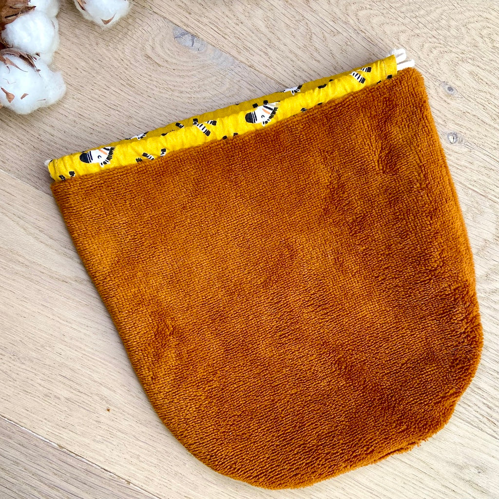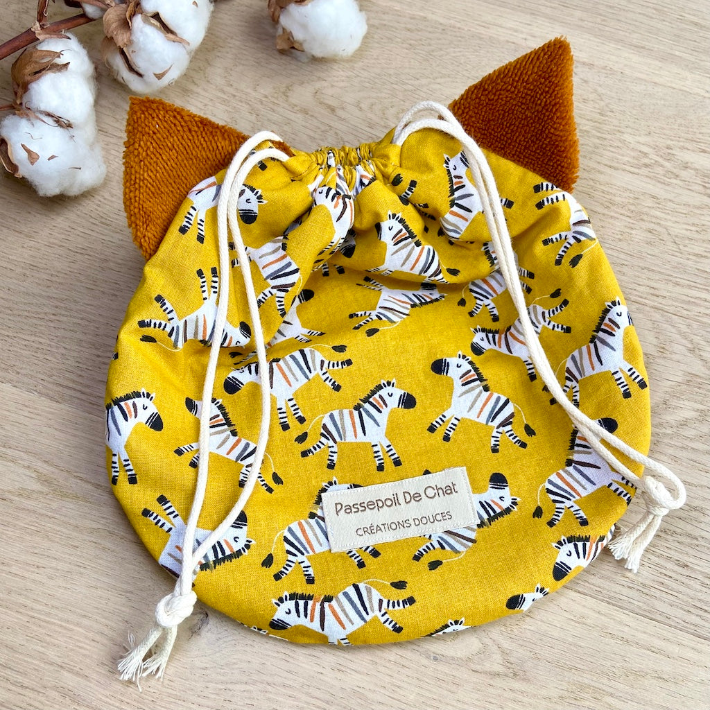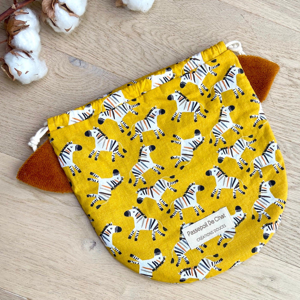 Le Pochat est un pochon polyvalent, pensé pour accueillir vos gants de toilette marionnettes Passepoil de Chat.