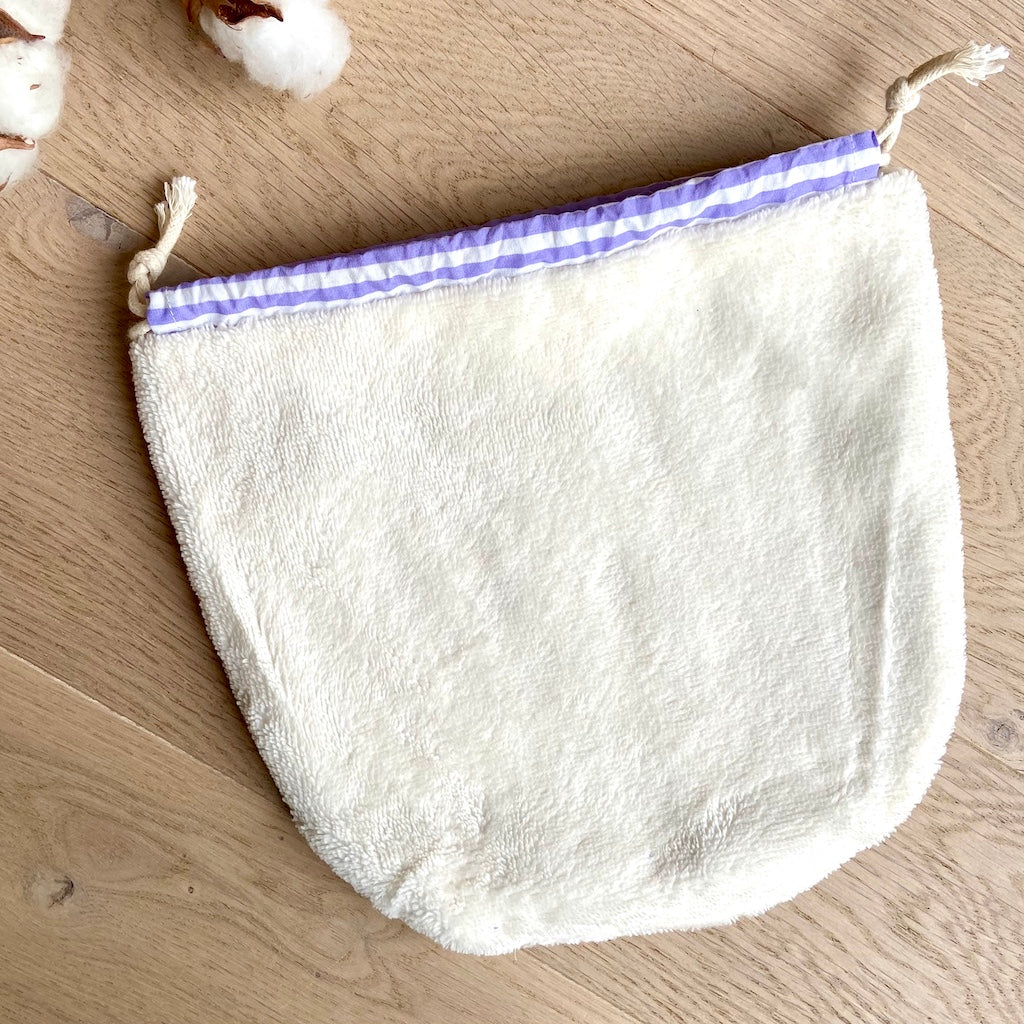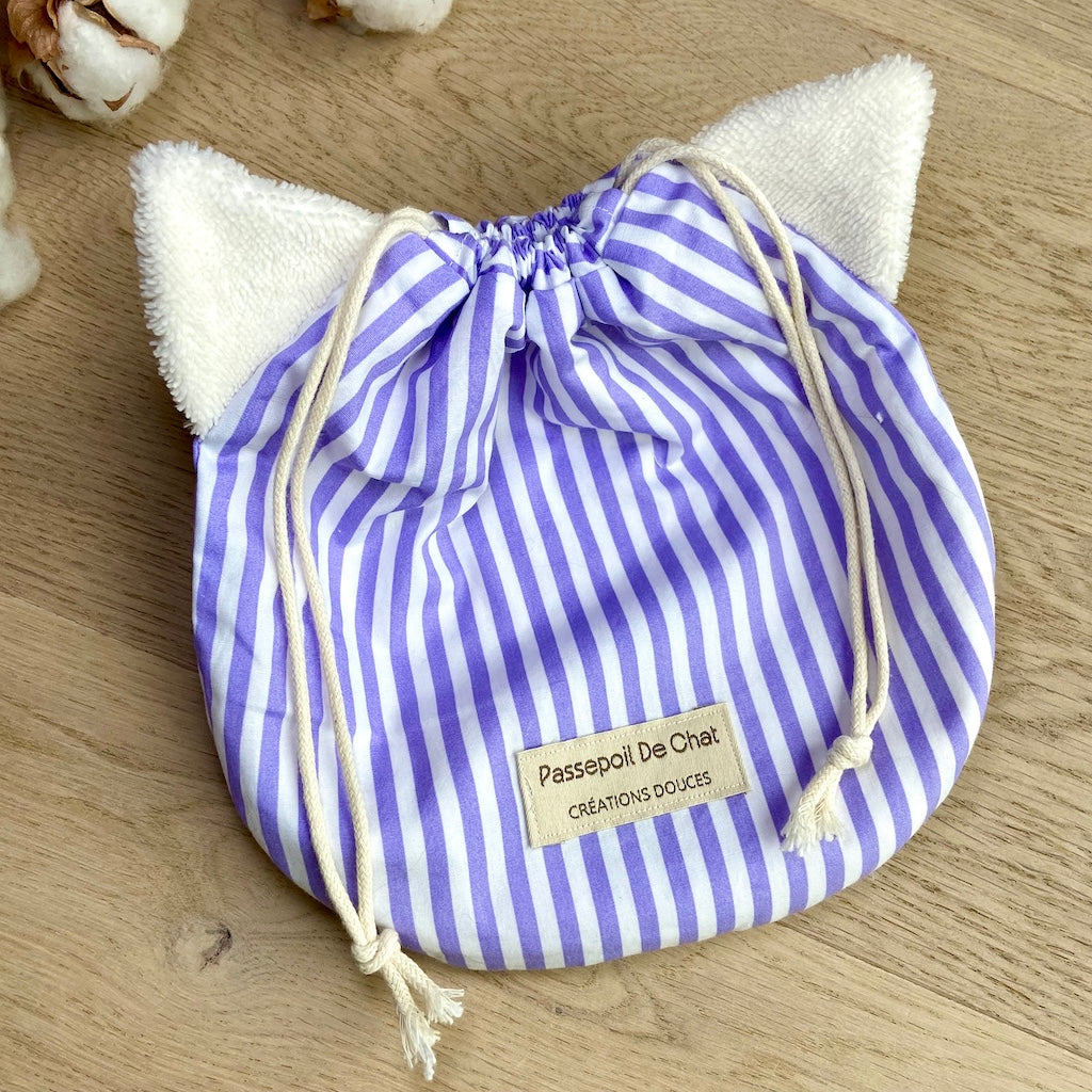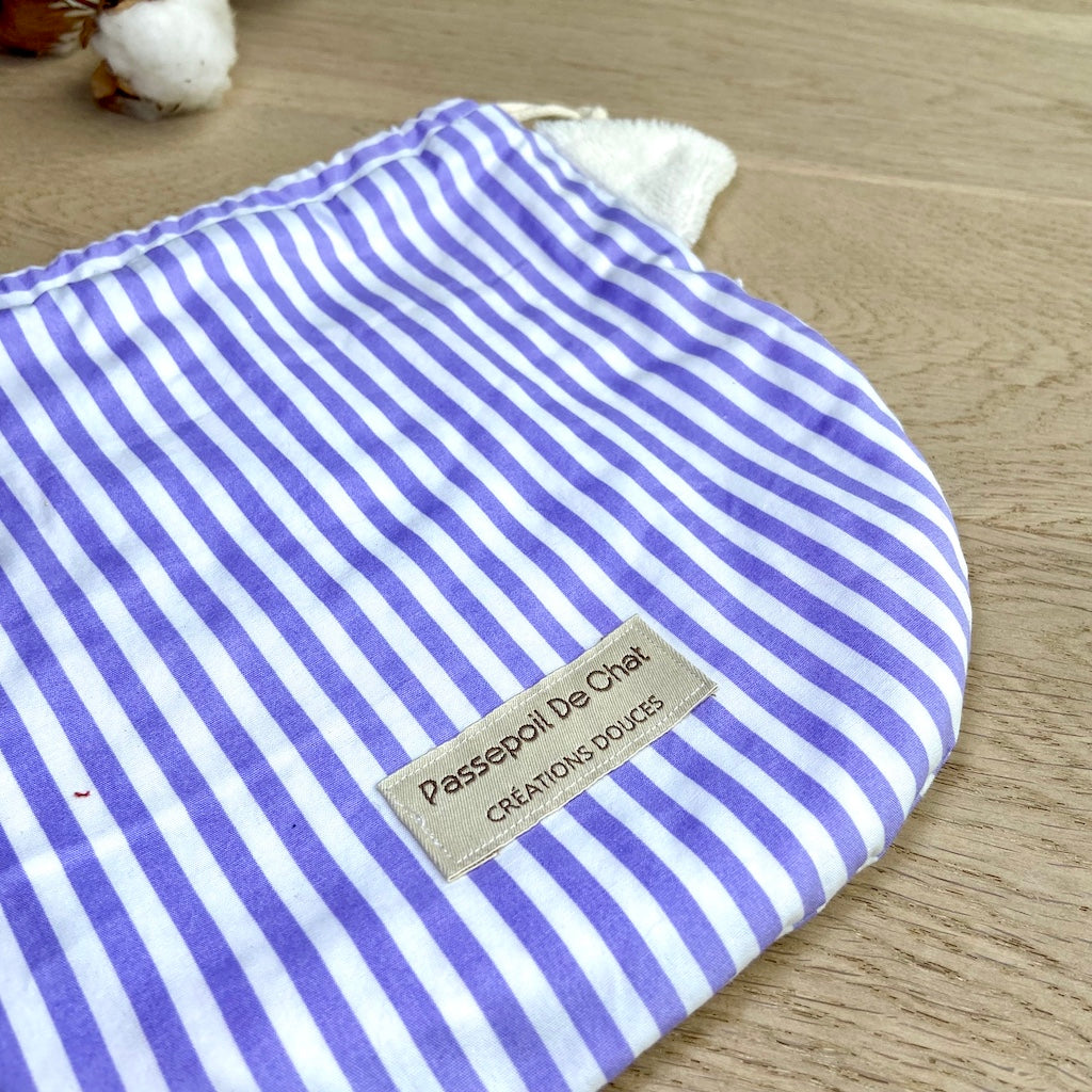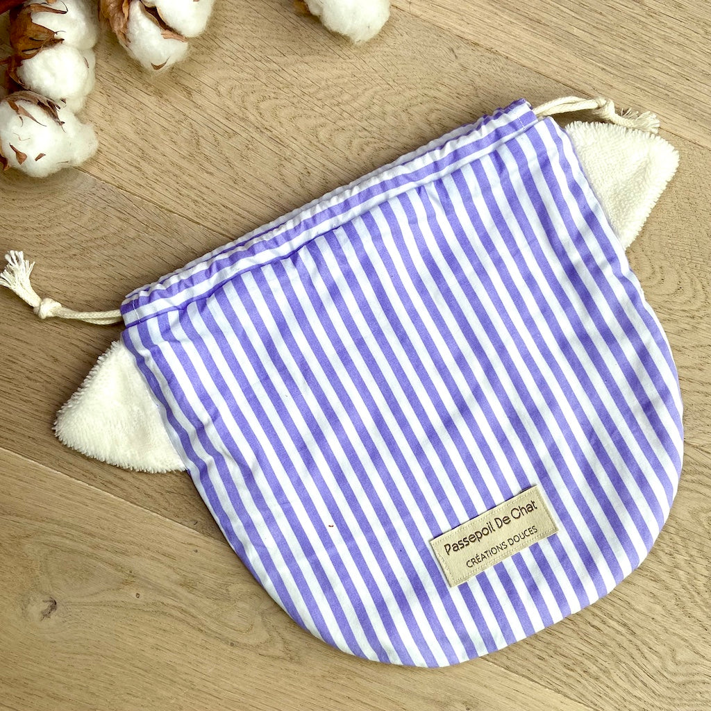 Le Pochat est un pochon polyvalent, pensé pour accueillir vos gants de toilette marionnettes Passepoil de Chat.
