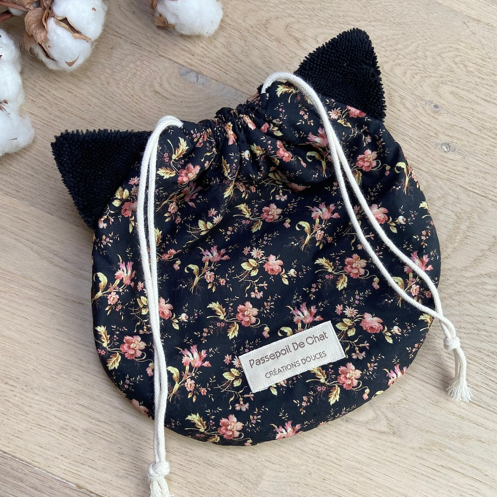 Le Pochat est un pochon polyvalent, pensé pour accueillir vos gants de toilette marionnettes Passepoil de Chat.