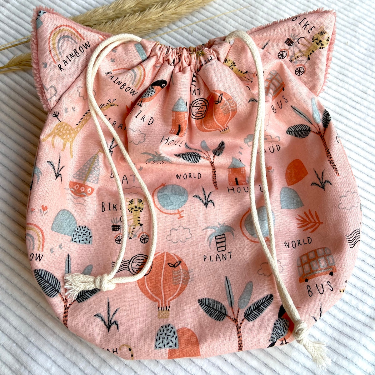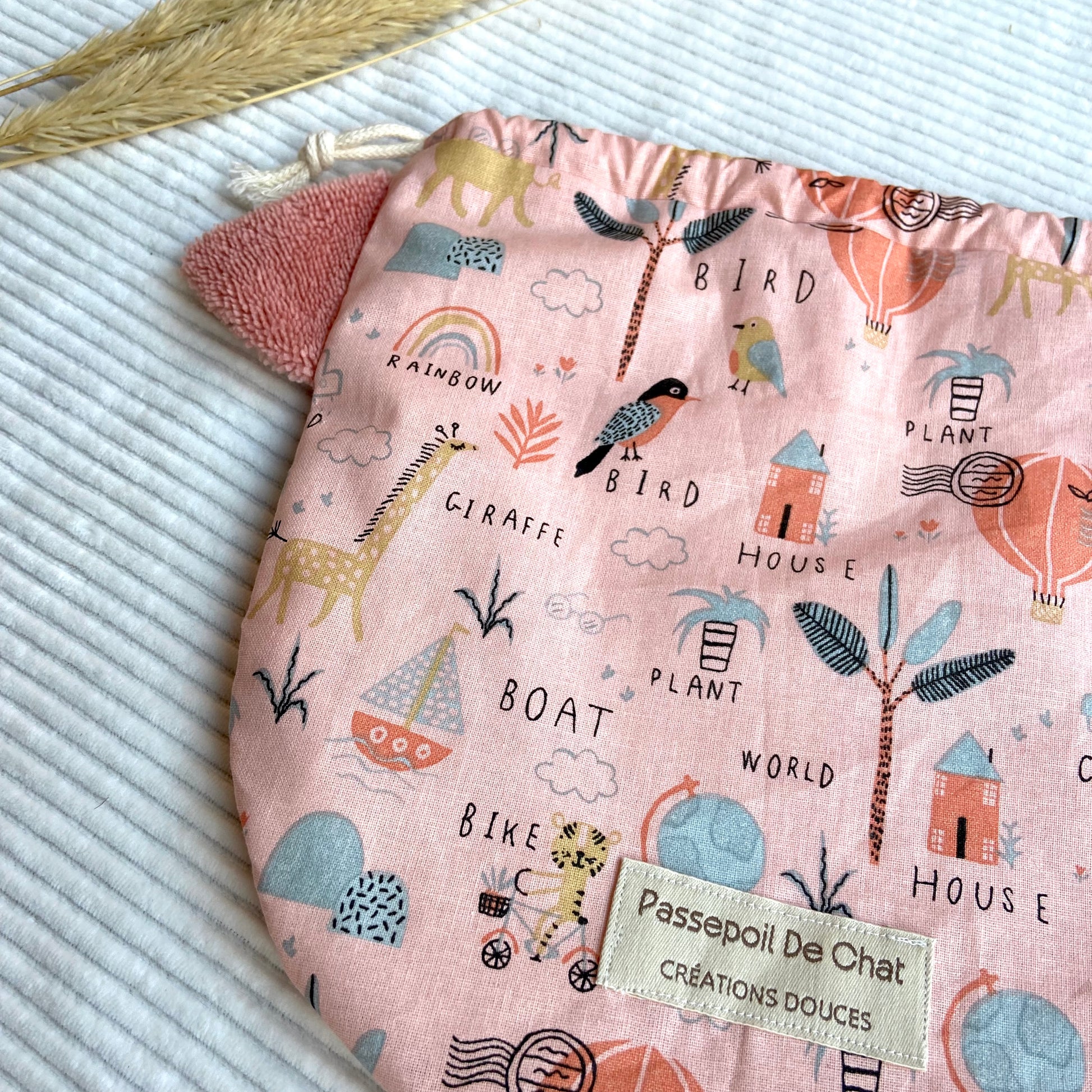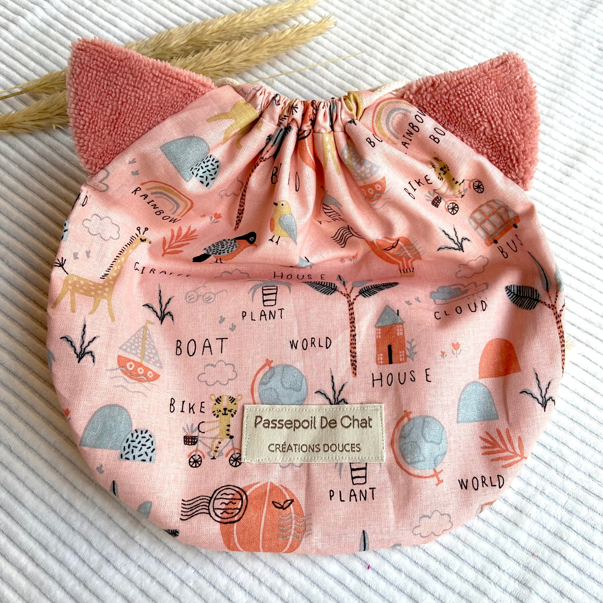 Le Pochat est un pochon polyvalent, pensé pour accueillir vos gants de toilette marionnettes Passepoil de Chat.