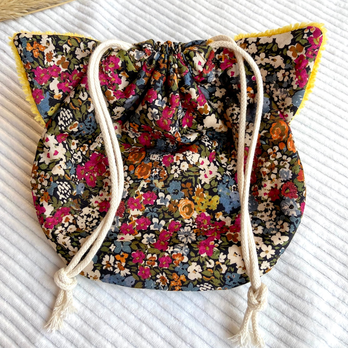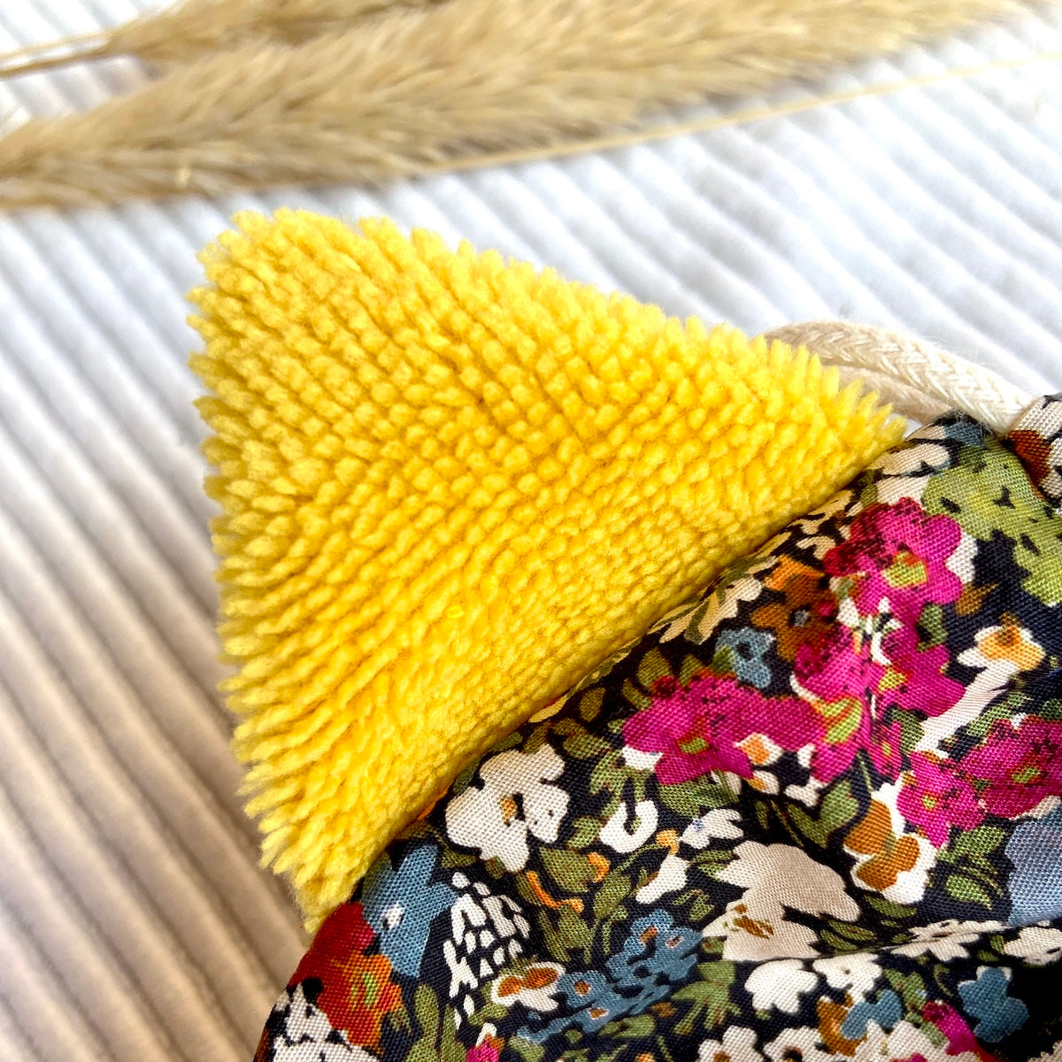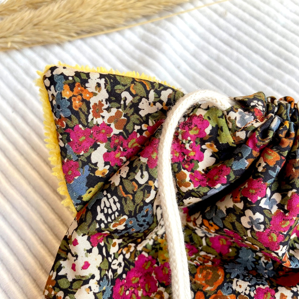 Chaque Pochaton est cousu dans des tissus dormants ou upcyclés, soigneusement choisis pour offrir une seconde vie à de belles matières oubliées. Entièrement doublé en coton, il est à la fois joli, durable et unique.