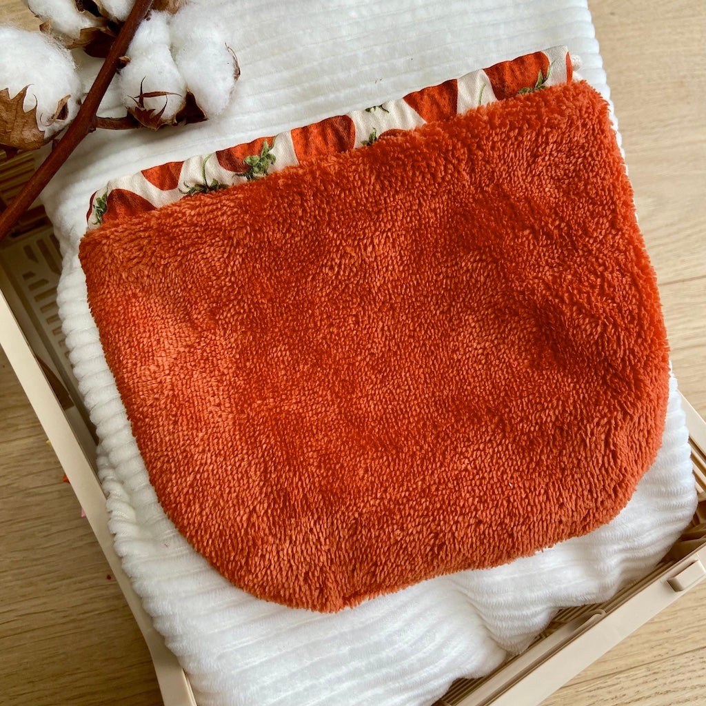 Chaque Pochaton est cousu dans des tissus dormants ou upcyclés, soigneusement choisis pour offrir une seconde vie à de belles matières oubliées. Entièrement doublé en coton, il est à la fois joli, durable et unique.