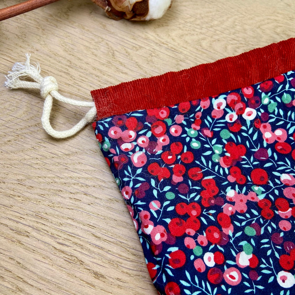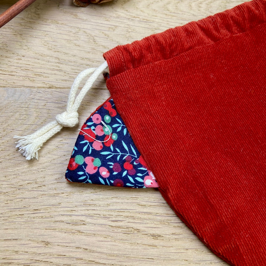 Chaque Pochaton est cousu dans des tissus dormants ou upcyclés, soigneusement choisis pour offrir une seconde vie à de belles matières oubliées. Entièrement doublé en coton, il est à la fois joli, durable et unique.